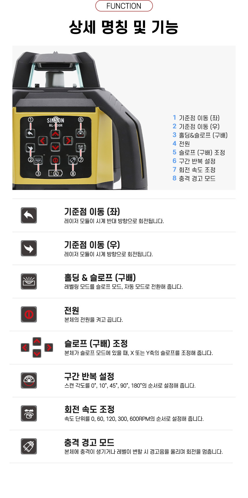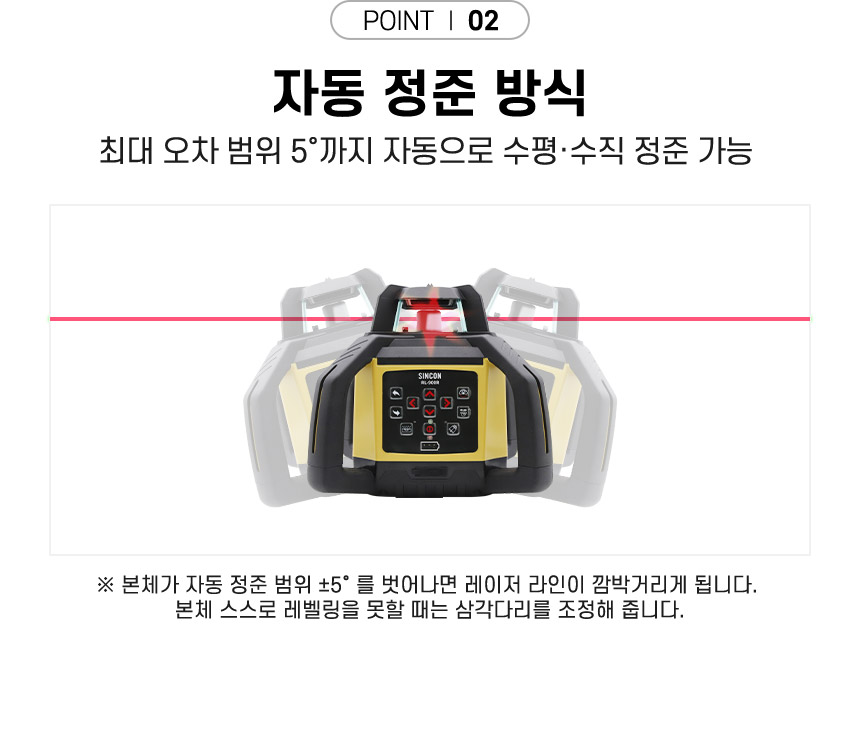 홈 / 제품소개 / SINCON / 레이저레벨기 / 회전 레이저 레벨기 / [신콘] 회전레이저레벨기 RL-900R [신콘] 회전레이저레벨기 RL-900R 모델명 : RL-900R 레이저 : 레드빔 작업범위 : 최대 직경 1200m 전원 : 충전식 배터리 팩, C size 배터리 팩 수광기 : DLS-800 리모컨 : RC-10 삼각다리(옵션) : 15.875mm, ELT60 다리 이상 사용 권장 스타프(옵션) : GAS-55 / CAS-55 카테고리: SINCON, 레이저레벨기, 제품소개, 회전 레이저 레벨기 태그: 레이저레벨, 신콘레벨, 신콘회전레벨, 신콘회전레이저, 신콘회전식레이저레벨기, 회전레벨, 회전레이저, 회전식레이저, 회전식레이저레벨 설명 설명 연관 상품 [신콘] 라인레이저레벨기 SL-445VSP 더 보기 [신콘] 라인레이저레벨기 SG-510 (오프라인) 더 보기 [신콘] 자동레벨기 B32 (32배율) 더 보기 [신콘] 라인레이저레벨기 SL-432PD 더 보기