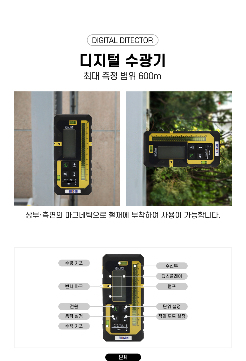 홈 / 제품소개 / SINCON / 액세서리 (레이저 레벨) / 수광기(디텍터) / [신콘] 회전 레이저 레벨 수광기 (디텍터) DLS-800 [신콘] 회전 레이저 레벨 수광기 (디텍터) DLS-800 제품명 : 디지털 수광기 모델명 : DLS-800 제조회사 : 신영측기(주) 원산지 : 중국 카테고리: SINCON, 수광기(디텍터), 액세서리 (레이저 레벨), 제품소개 설명 설명 연관 상품 [신콘] 라인레이저레벨기 SL-443L 더 보기 [신콘] 포켓라인레이저레벨기 SL-5 더 보기 [신콘] 라인레이저레벨기 SL-445P 더 보기 [신콘] 3D 라인레이저레벨기 SL-3DG 더 보기