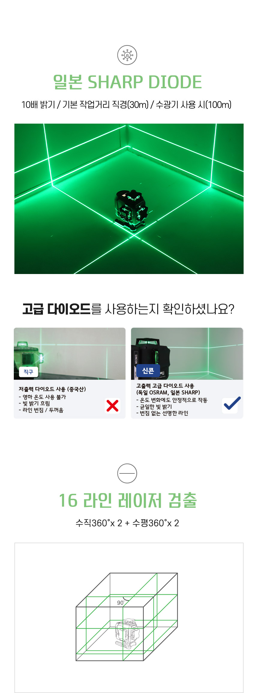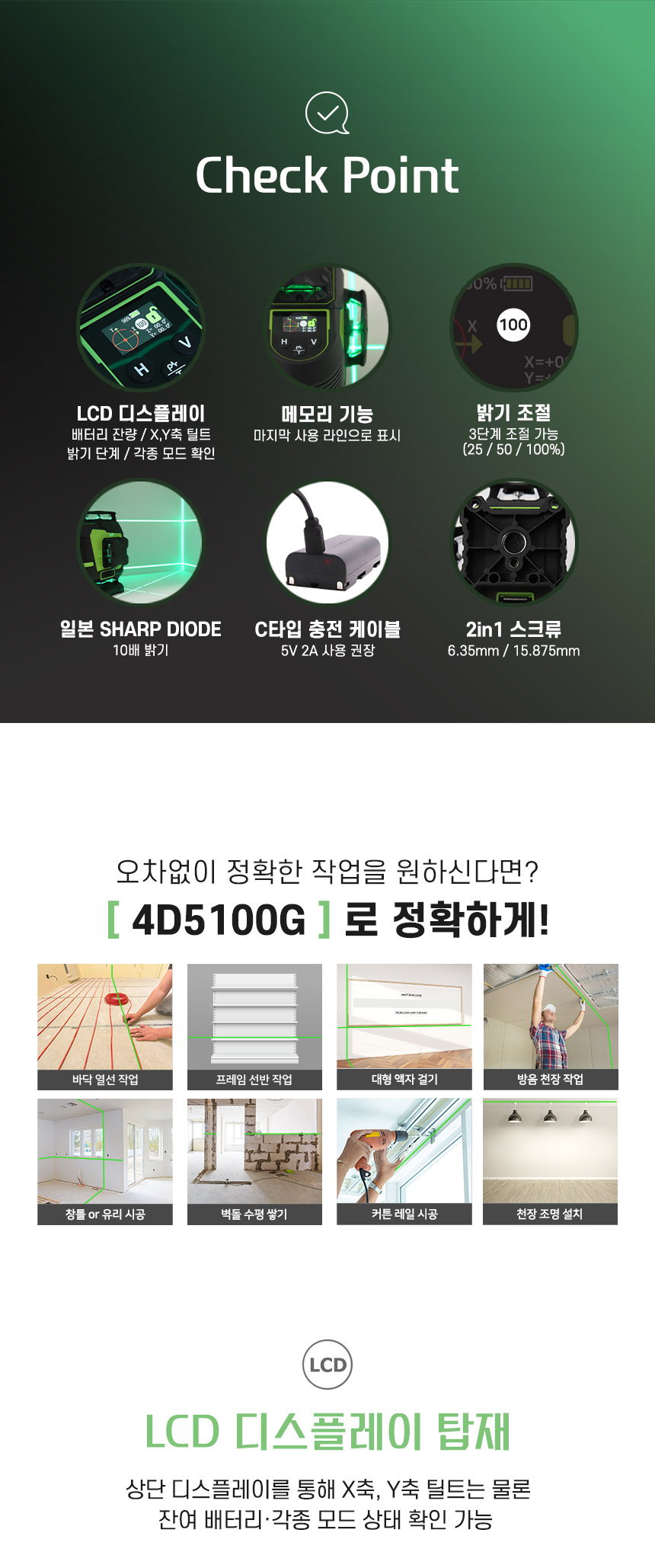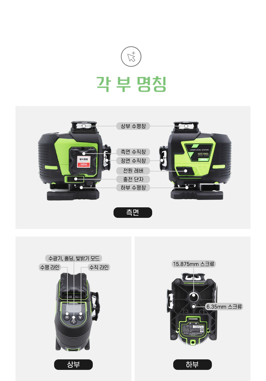 홈 / 제품소개 / SINCON / 레이저레벨기 / 4D 타입 레이저 레벨기 / [신콘] 4D 라인레이저레벨기 4D5100G(오프라인) [신콘] 4D 라인레이저레벨기 4D5100G(오프라인) 모델명 : 4D5100G 제동방식 : 마그네틱댐핑(추) 다이오드 : 샤프 레드 LD 다이오드 라인검출 : 수직360˚ X 2 + 수평360˚ X 2 전원 : SLB-800 수광기(옵션) : SD2000G 스크류사이즈 : 본체 6.35mm, 15.875mm 삼각다리(옵션) : 15.875mm, ELT50 다리 이상 사용 권장 카테고리: 4D 타입 레이저 레벨기, SINCON, 레이저레벨기, 제품소개 태그: 4D레벨기, 4D레이저, 4D추방식, 라인레벨, 라인레이저, 라인레이저레벨, 레벨기, 레이저레벨, 신콘라인레이저, 신콘레벨기, 신콘레이저, 신콘추방식, 추방식레벨, 추방식레이저, 포디레이저, 포디추방식 설명 설명 연관 상품 [신콘] 라인레이저레벨기 SG-710 (오프라인) 더 보기 [신콘] 자동레벨기 B32 (32배율) 더 보기 [신콘] 라인레이저레벨기 SL-445P 더 보기 [신콘] 자동레벨기 A32 (32배율) 더 보기