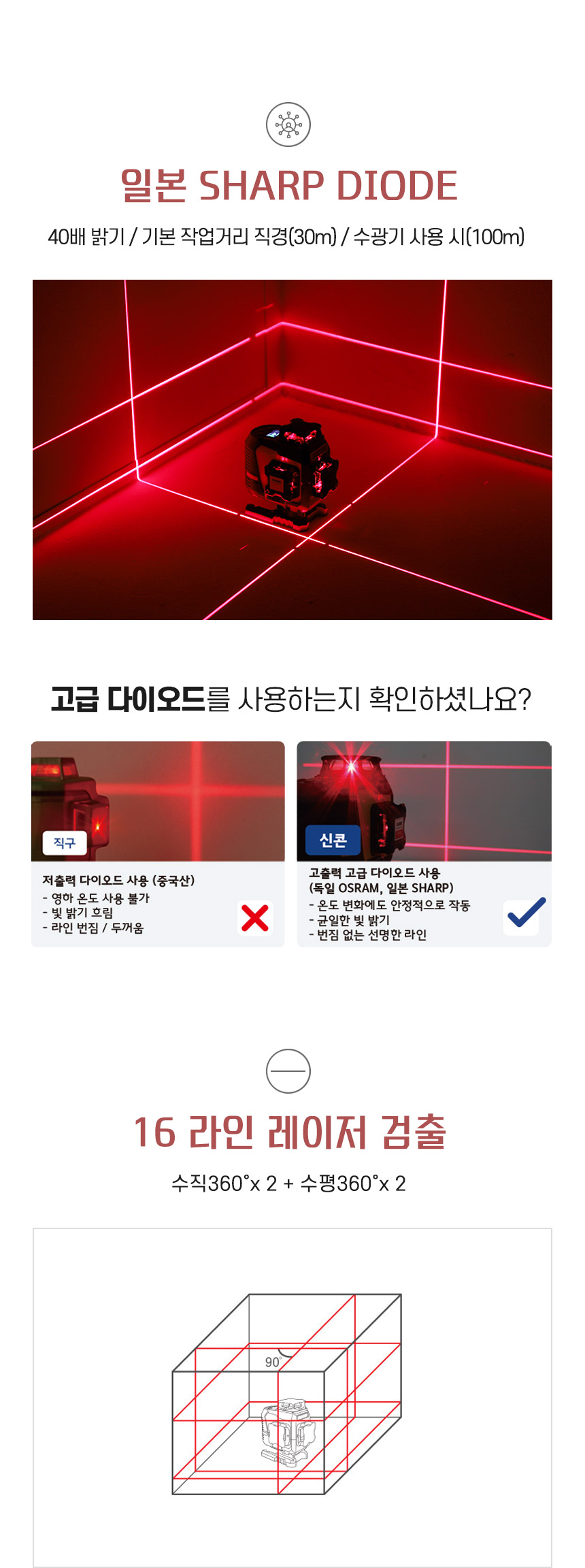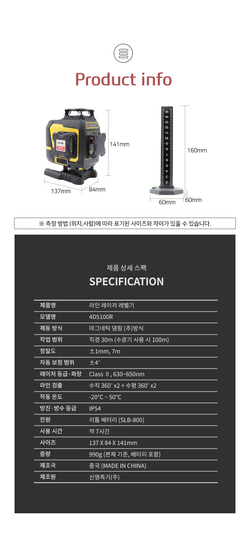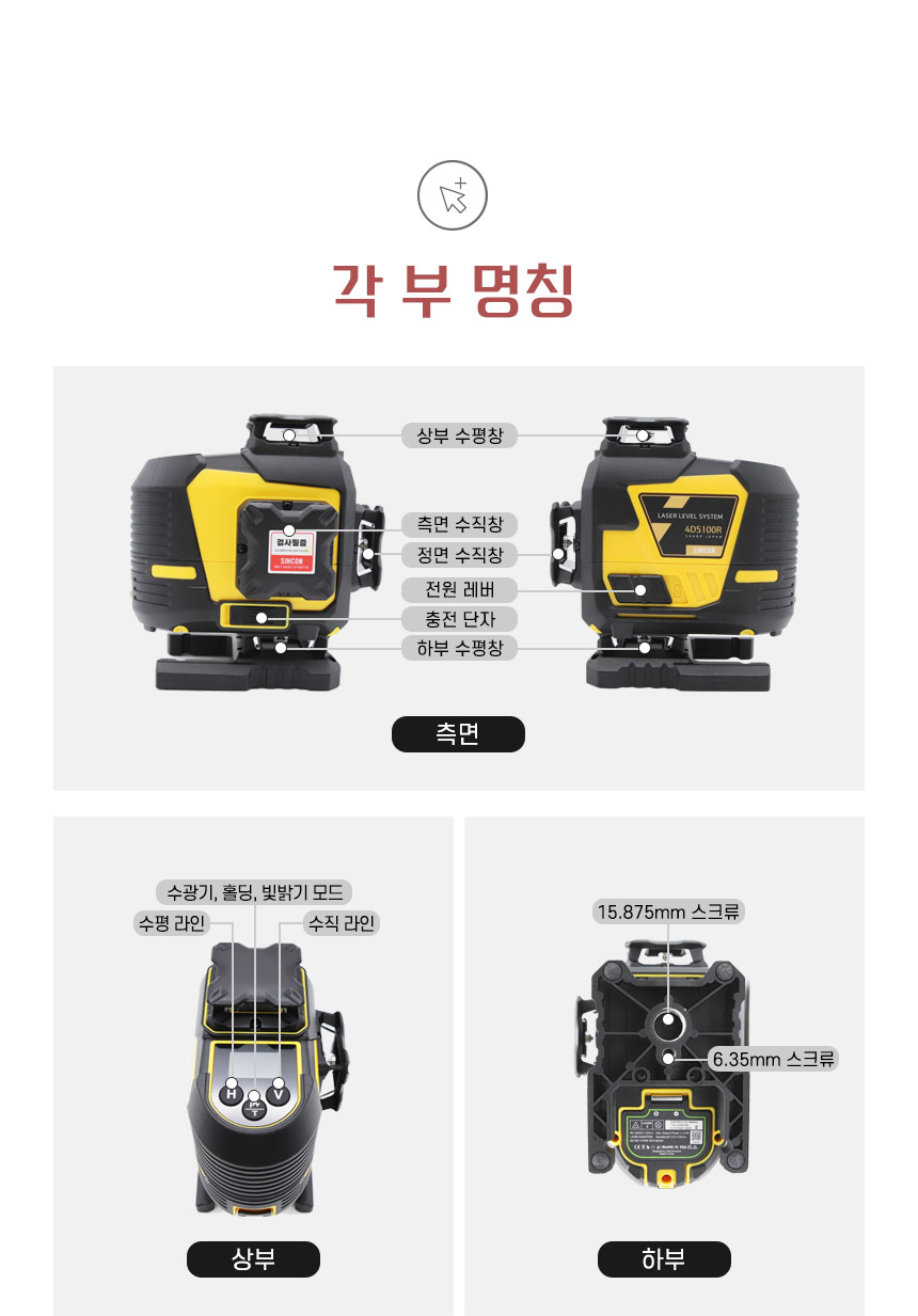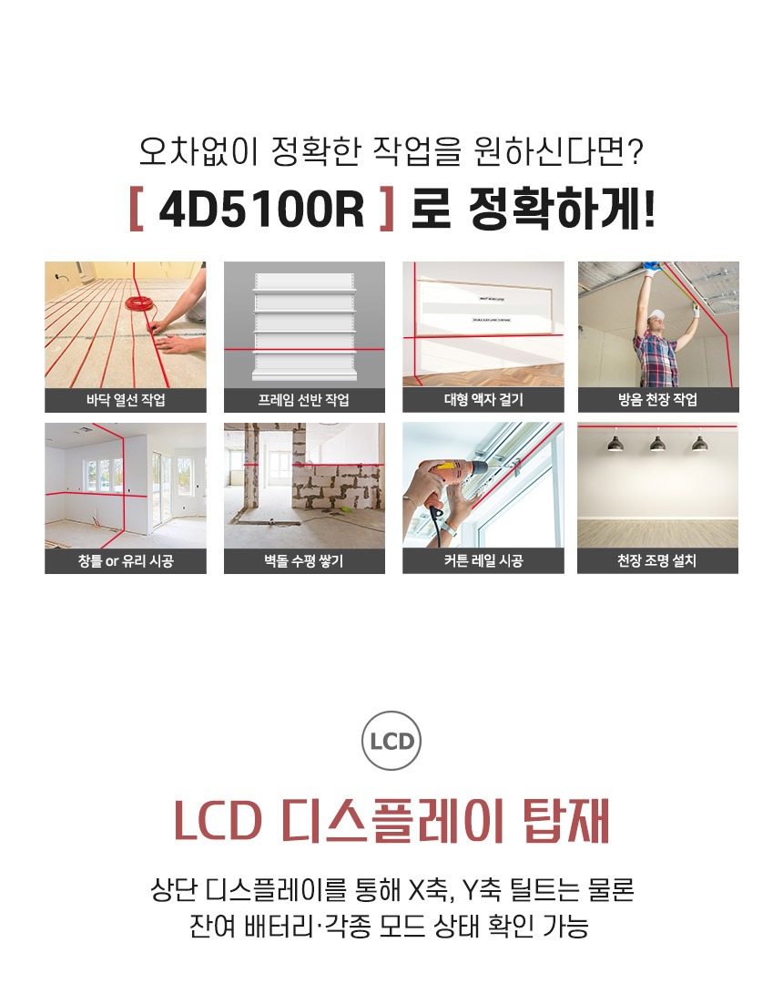 홈 / 제품소개 / SINCON / 레이저레벨기 / 4D 타입 레이저 레벨기 / [신콘] 4D 라인레이저레벨기 4D5100R(오프라인) [신콘] 4D 라인레이저레벨기 4D5100R(오프라인) 모델명 : 4D5100R 제동방식 : 마그네틱댐핑(추) 다이오드 : 샤프 레드 LD 다이오드 라인검출 : 수직360˚ X 2 + 수평360˚ X 2 전원 : SLB-800 수광기(옵션) : SD7000 스크류사이즈 : 본체 6.35mm, 15.875mm 삼각다리(옵션) : 15.875mm, ELT50 다리 이상 사용 권장 카테고리: 4D 타입 레이저 레벨기, SINCON, 레이저레벨기, 제품소개 태그: 4D레벨기, 4D레이저, 4D추방식, 라인레벨, 라인레이저, 라인레이저레벨, 레벨기, 레이저레벨, 신콘라인레이저, 신콘레벨기, 신콘레이저, 신콘추방식, 추방식레벨, 추방식레이저, 포디레이저, 포디추방식 설명 설명 연관 상품 [신콘] 3D 라인레이저레벨기 SL-3DG 더 보기 [신콘] 라인레이저레벨기 SL-432PD 더 보기 [신콘] 자동레벨기 B32 (32배율) 더 보기 [신콘] 라인레이저레벨기 SL-445VSP 더 보기