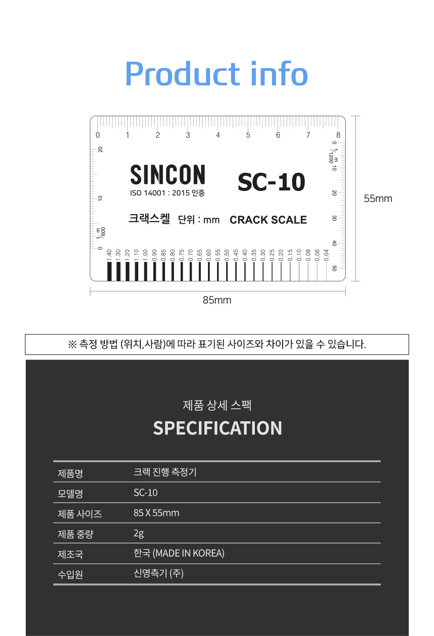 홈 / 제품소개 / SINCON / 비파괴장비 / 크랙 측정기 / [신콘] 크랙스케일 SC-10 [신콘] 크랙스케일 SC-10 제품명 : 명함 크랙 스케일 모델명 : SC-10 제조회사 : 신영측기(주) 원산지 : 중국 카테고리: 크랙 측정기 설명 설명 연관 상품 [신콘] 간이 크랙 진행 측정기 SC-100 KIT 더 보기 [신콘] 전자식 크랙 진행 측정기 SD-150 (게이지) 더 보기 [신콘] 간이 크랙 진행 측정기 SC-1000 더 보기 [신콘] 크랙확대경 2028 더 보기